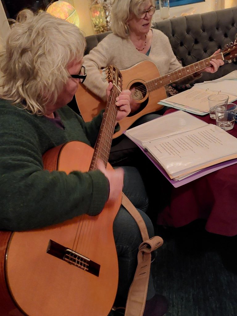 Unsere Oldkehlchen-OMAS geben den Ton dafür an. Sie verändern die Texte bekannter Lieder und geben ihnen aktuelle Texte mit politischen Botschaften. In ihrem Kreis bereiten sie die Lieder zunächst vor, damit später ALLE mitsingen können.