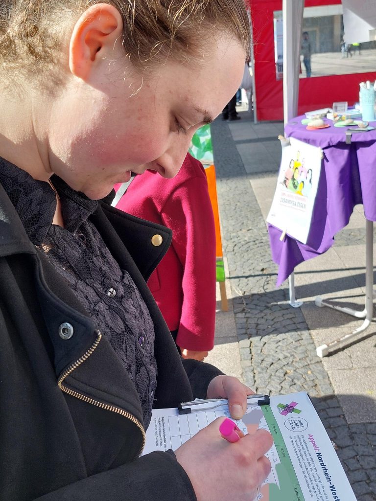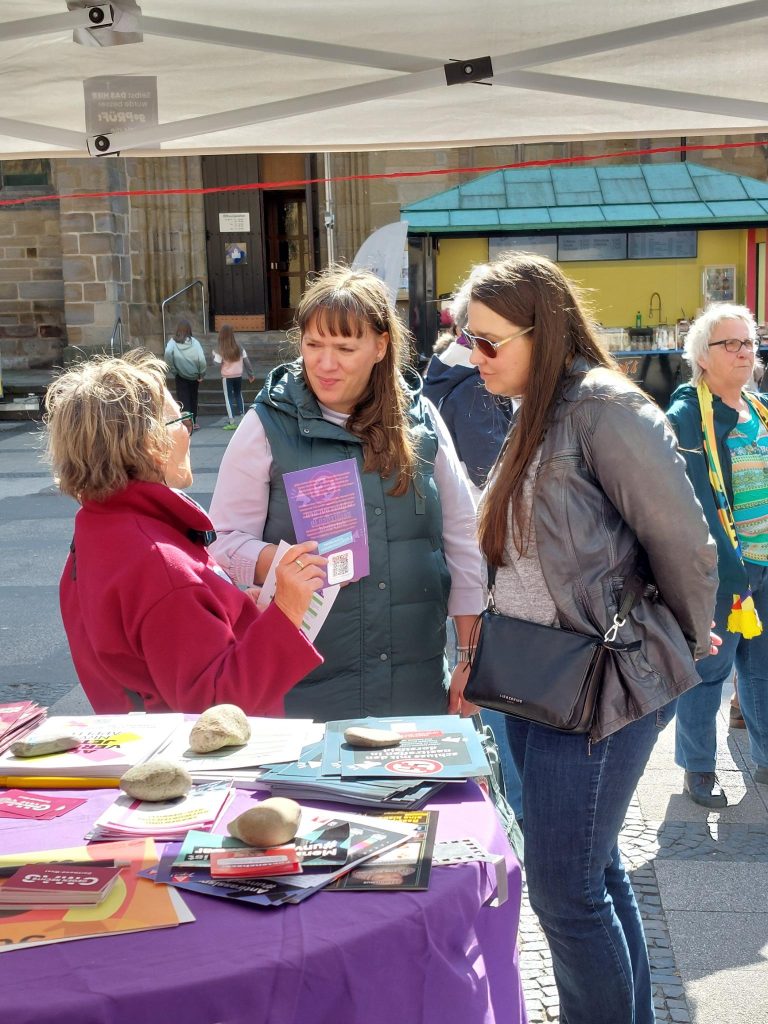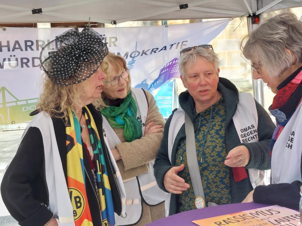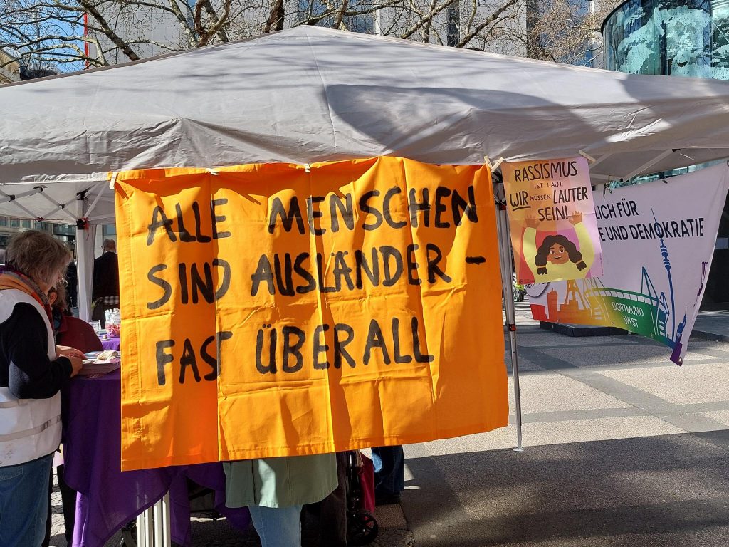 Für uns gehört das Eintreten gegen Rassismus in allen seinen Formen zu unseren wichtigsten Zielen. Deshalb standen wir – gemeinsam mit anderen – am 21.3., dem Tag gegen den Rassismus, vor der Reinoldikirche und kamen ins Gespräch.