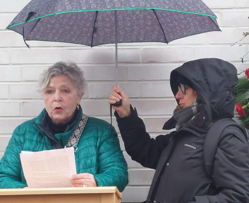Unsere Mit-OMA Ursula Maria Wartmann las am Gründonnerstag, 2.4. am ehemaligen Gestapo-Sitz in der Bennighofer Straße 16-18 zum Gedenken an die Opfer des nazistischen Terrors zwei Gedichte. Mehr Infos auf der Webseite von Ursula Maria Wartmann.