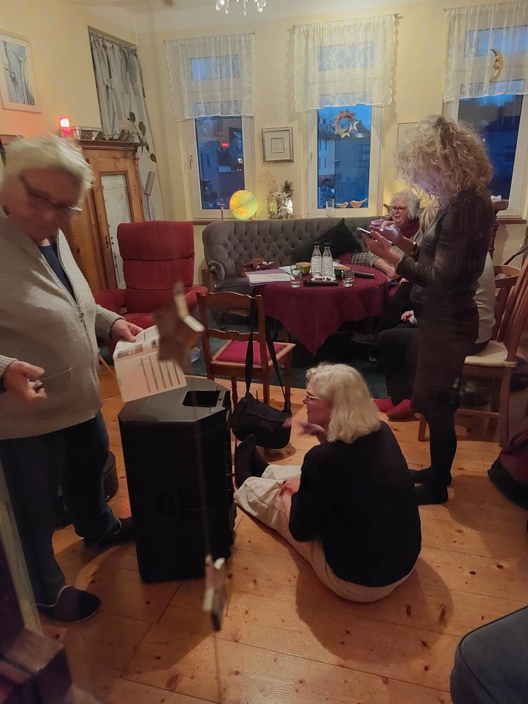 Unsere Oldkehlchen singen. Aber das ist nicht alles: Zu ihren Übungsabenden treffen sie sich mit Gitarren und Keksen, manchmal ist wohl auch ein Schlückchen Wein dabei. Immer aber Kreativität, gilt es doch zum Beispiel zu texten. Fröhlichkeit und Gemeinschaftsgefühl. Seit ein paar Tagen nun können auch die Stimmen verstärkt werden und – wie es unten zu sehen ist – kam auch der Spaß bei den ersten Technikprobe nicht zu kurz. Wilhelmplatz, die Oldkehlchen kommen!
